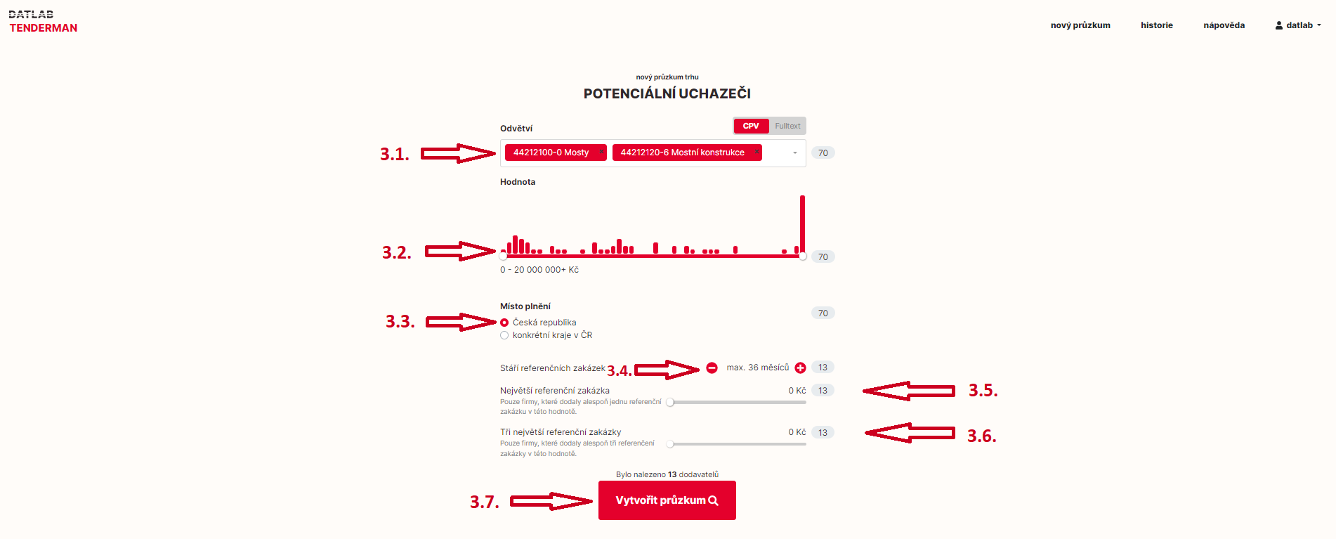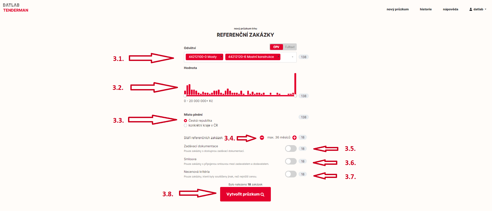 Stáří referenčních zakázek určuje, jak moc do historie chcete hledat. Např.: hodnota max. 36 měsíců znamená, že ve výsledku průzkumu budou pouze zakázky, které nejsou starší než 3 roky.