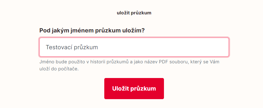 Při ukládání průzkumu se zároveň automaticky vygeneruje PDF soubor, který si můžete uložit do počítače a následně vytisknout tak, jak jste zvyklí.