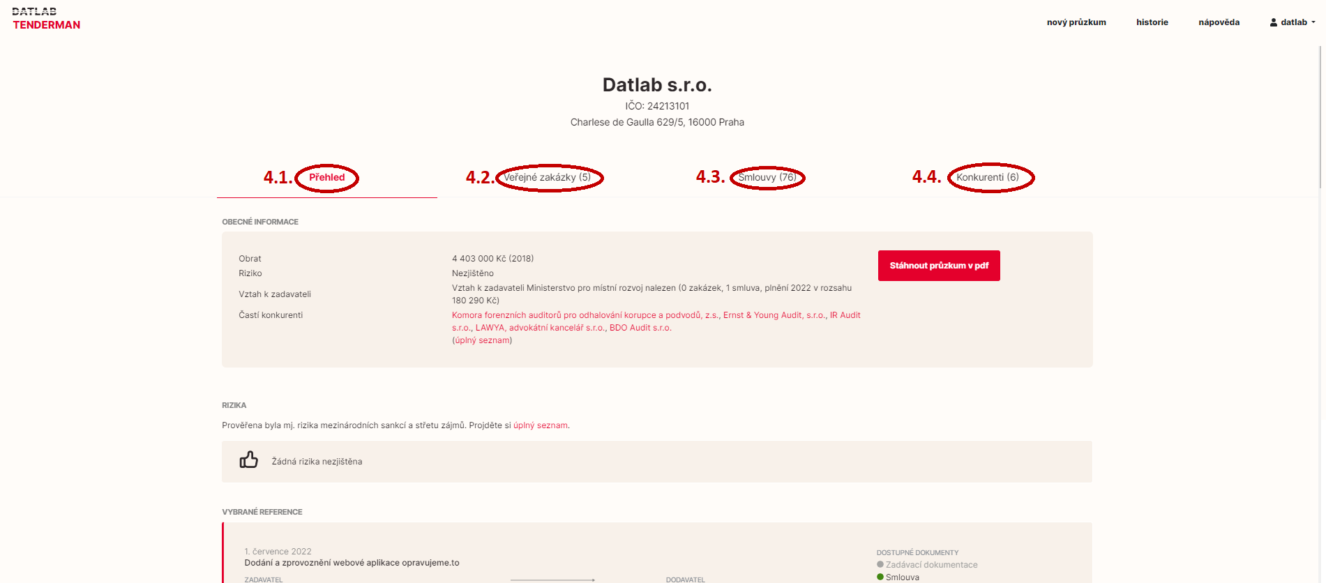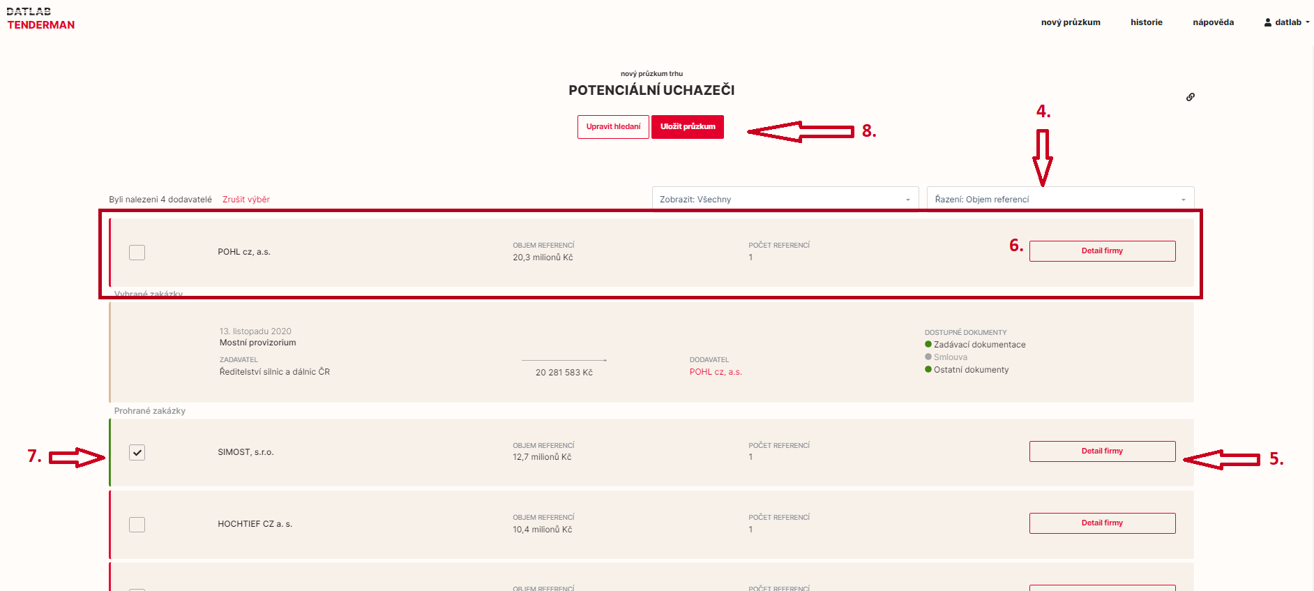 Tenderman Vám dobře poslouží, když připravujete novou zakázku, hledáte firmy, které by mohly určitou věc či službu dodat nebo si potřebujete určitého dodavatele prověřit např. ohledně bankrotu či protiruských sankcí.